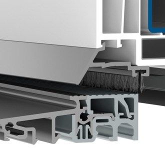 - Ochranné kartáčky a hliníková okapnice v prahové části