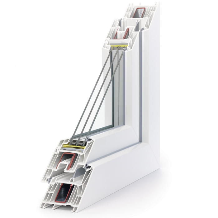 Plastové okno Rehau Synego se stavební hloubkou 80 mm a pohledovou výškou 117 mm jsou zárukou vynikajících tepelněizolačních, zvukověizolačních a statických vlastností. Okna jsou provedena se třemi rovinami těsnění šedé a černé barvy, zasklívací lišty jsou v interiéru zkosené.
